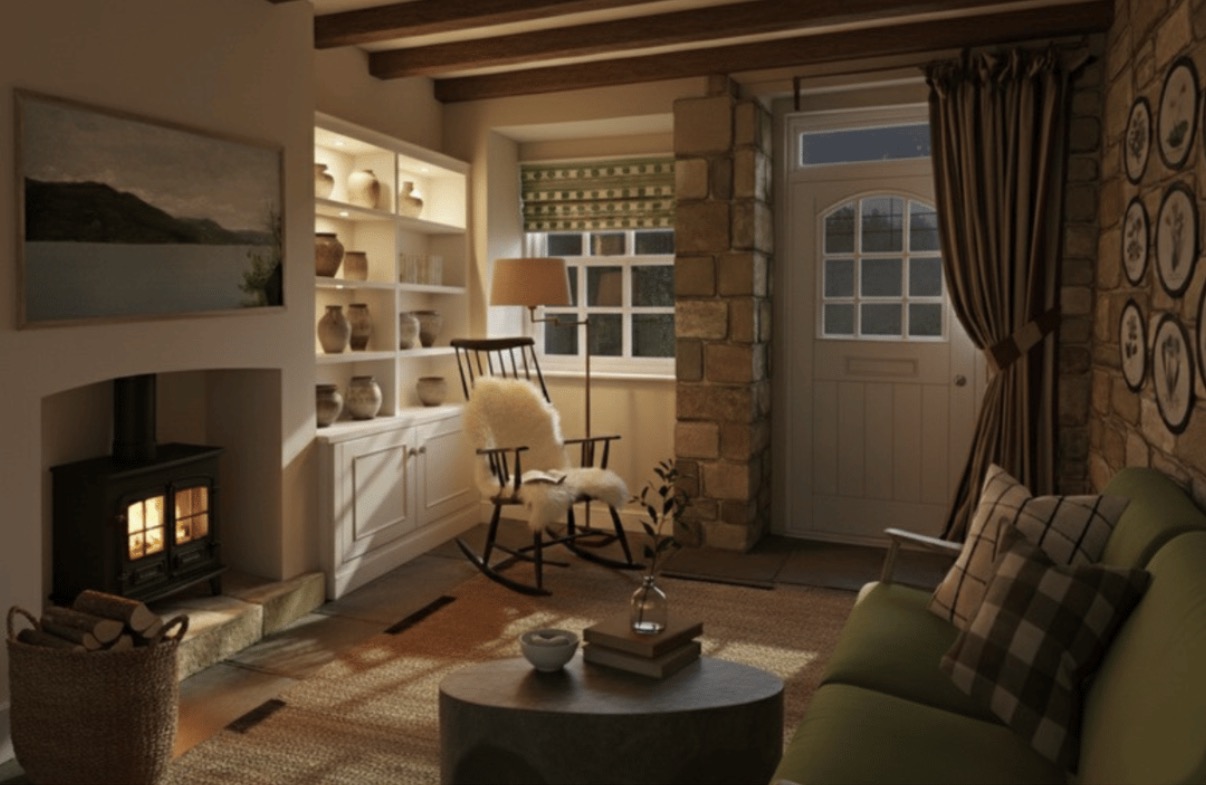 Full of classic Cotswold charm, the cottage features flagstone floors, exposed honey-coloured stone walls and a welcoming fireplace, creating a warm and characterful space to return to after a day exploring the Cotswolds.