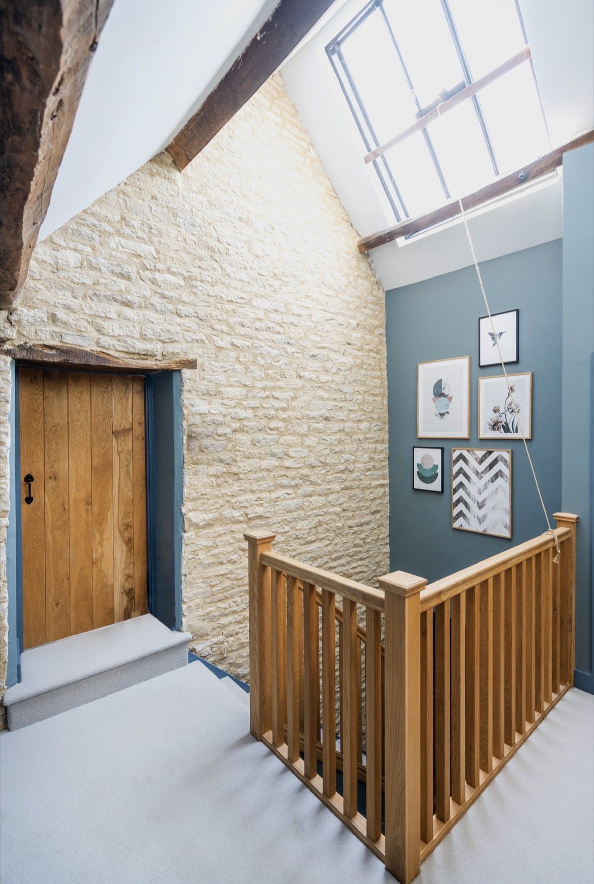Upstairs, a galleried landing leads to three beautifully presented bedrooms: